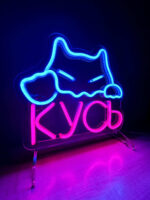 Оригинальная вывеска из гибкого неона в виде кошки с надписью кусь станет отличным , оригинальным домашним декором.