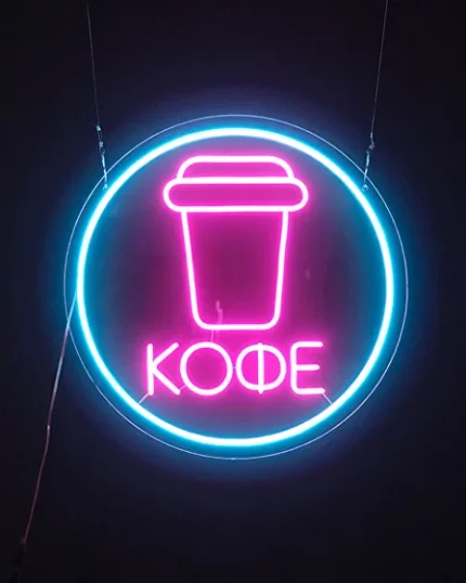 Вывеска изготовлена из гибкого неона и предназначен для установки внутри помещения: на стене, на внутренней части окна или входной двери.